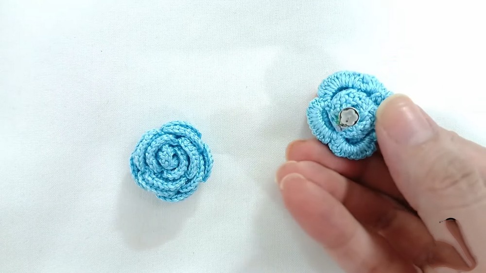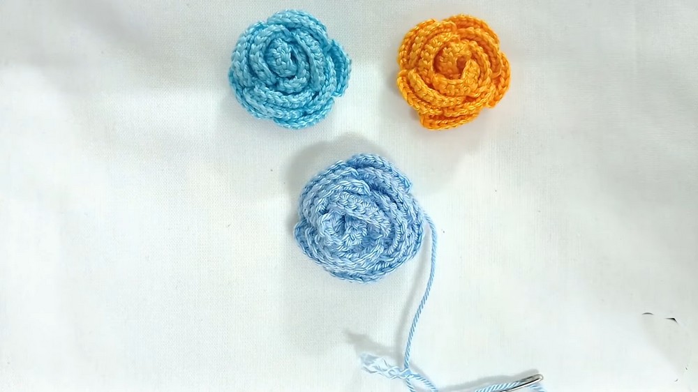 A tiny, delicate flower that feels soft and lightweight can add charm and elegance to your outfit. This beautiful blossom is not real, but its intricate design looks just as enchanting as a natural flower. Made with simple crochet techniques, it features elegant petals spiraling together in a graceful pattern. It’s perfect for any occasion, whether paired with casual outfits for a playful touch or worn with formal attire to add a unique artistic flair.