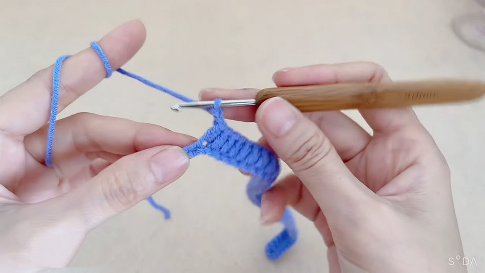 - Crochet 3 chain stitches, then slip stitch into the next SC.
