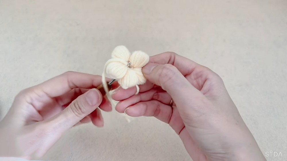 Repeat this process to create 5 petals in total, one for each SC in the base row.