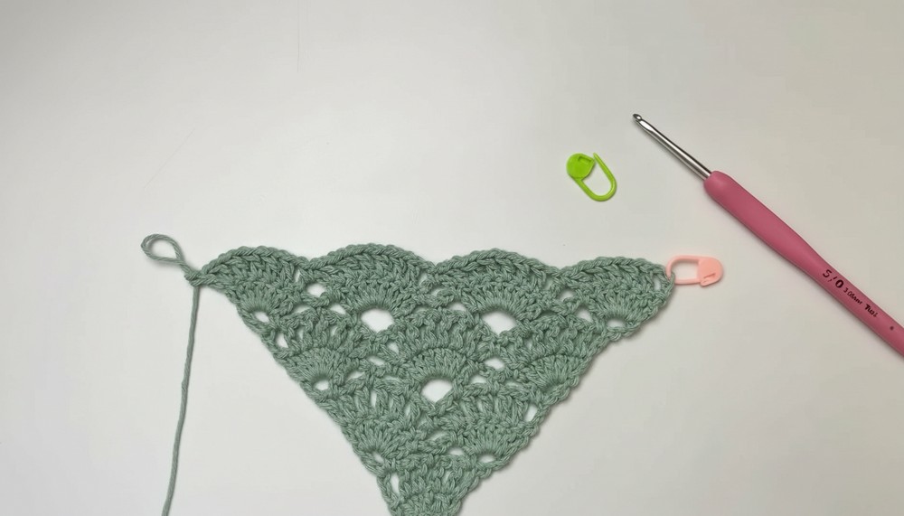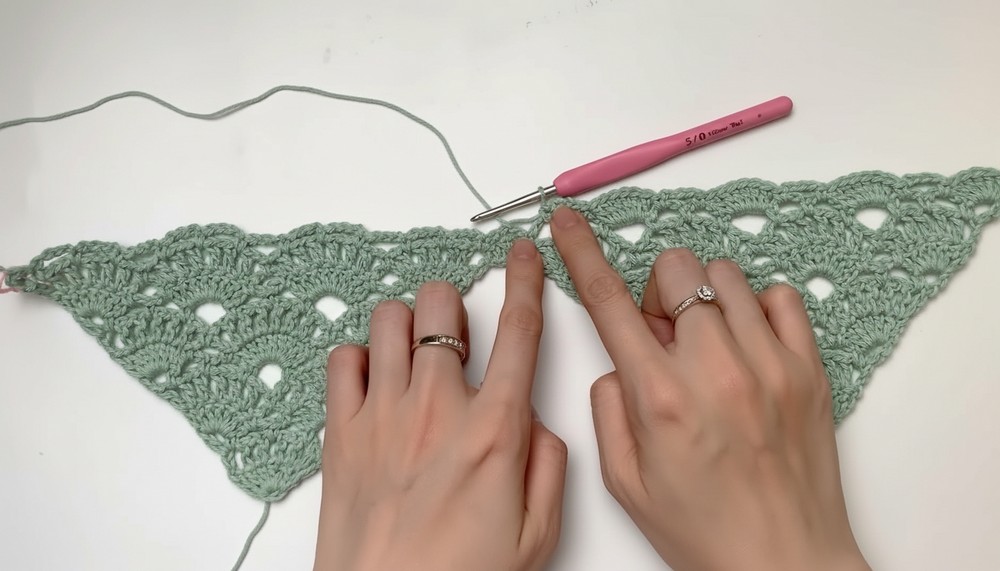 • Continue the repetitive fan stitch pattern, expanding the fans each row.
