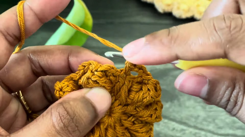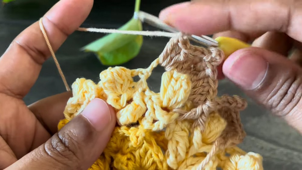 - Work a single crochet into the same space after finishing the popcorn.