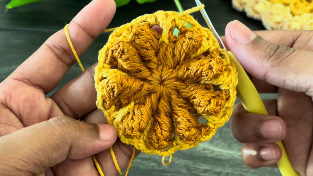- Close the round with a slip stitch.