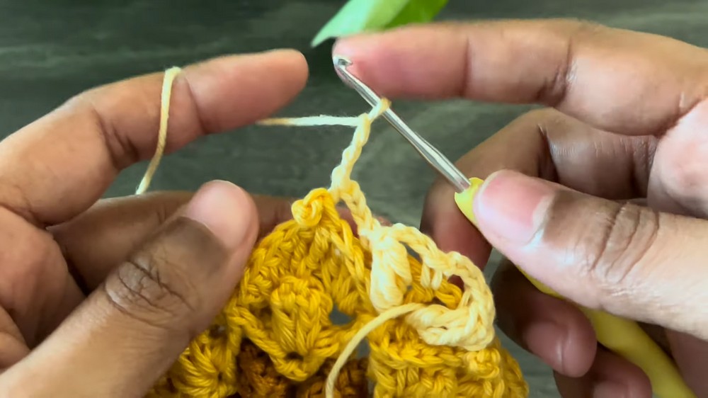 - End the round by slip stitching into the first chain of the round.