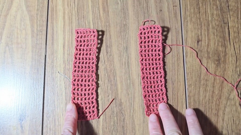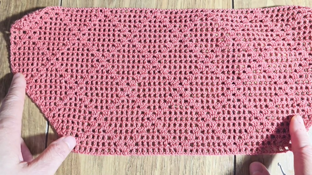 - Join side seams starting at straps, using slip stitches or sewing with yarn needle.