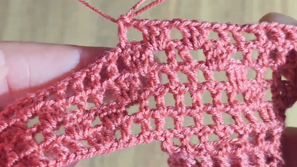 - Chain 1, skip chain, sc in next chain, chain 1, skip chain, dc in next chain, repeat to end.
