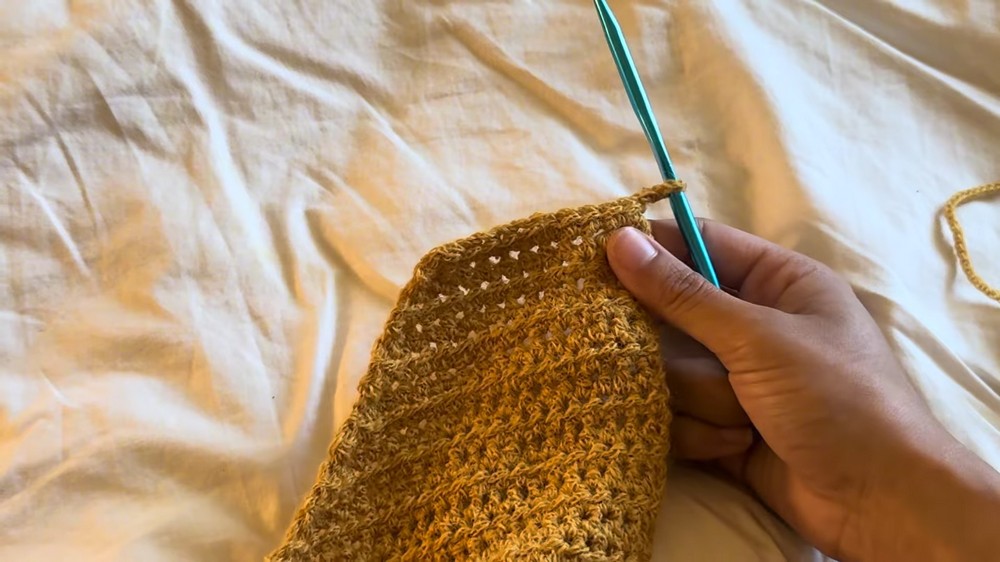- Hdc in each stitch until 2 stitches remain, then work hdc2tog across the last 2 stitches.