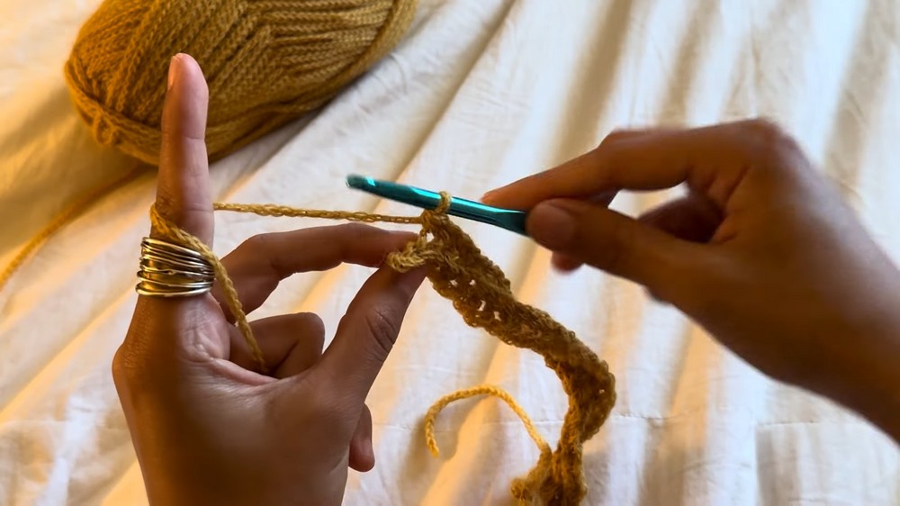 - Chain 31 and work 10 rows of back loop only single crochet (see technique below).