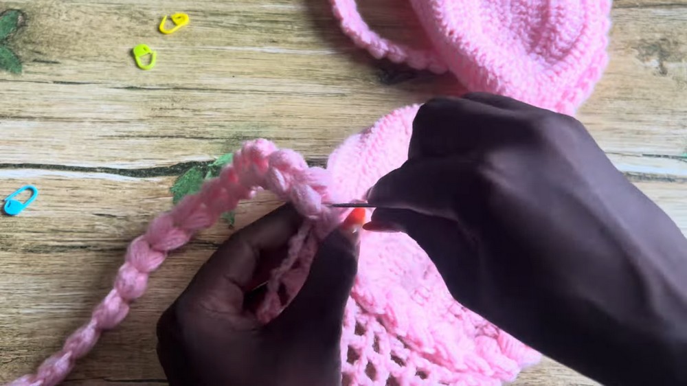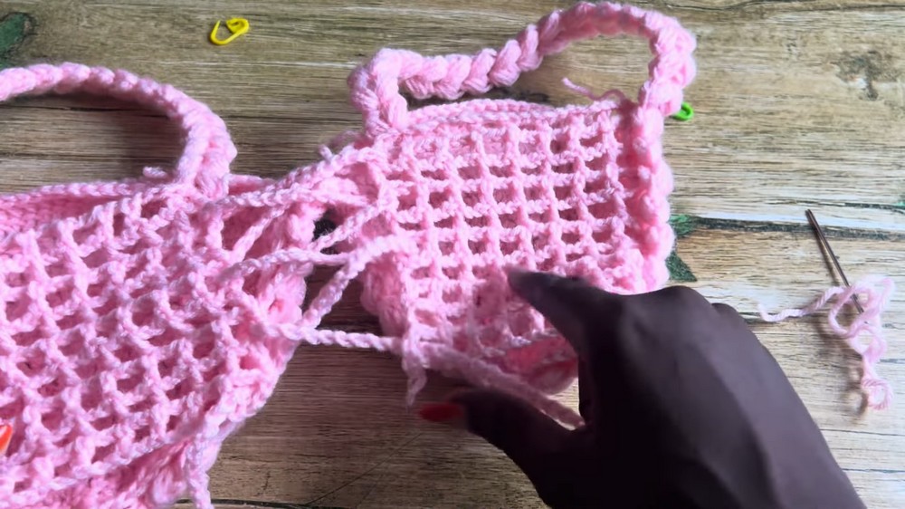 2. If the mesh parts look uneven, add single crochet stitches for additional refinement.