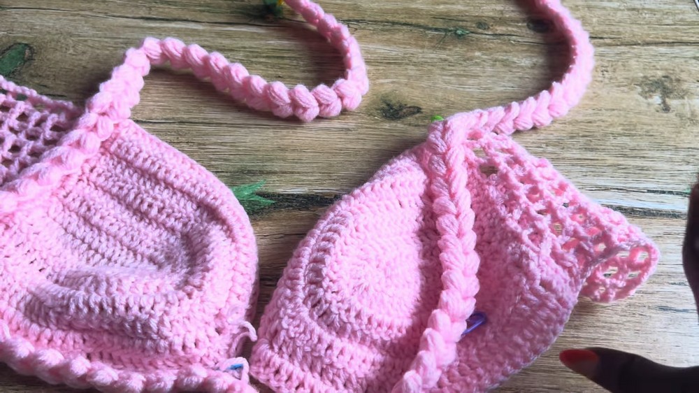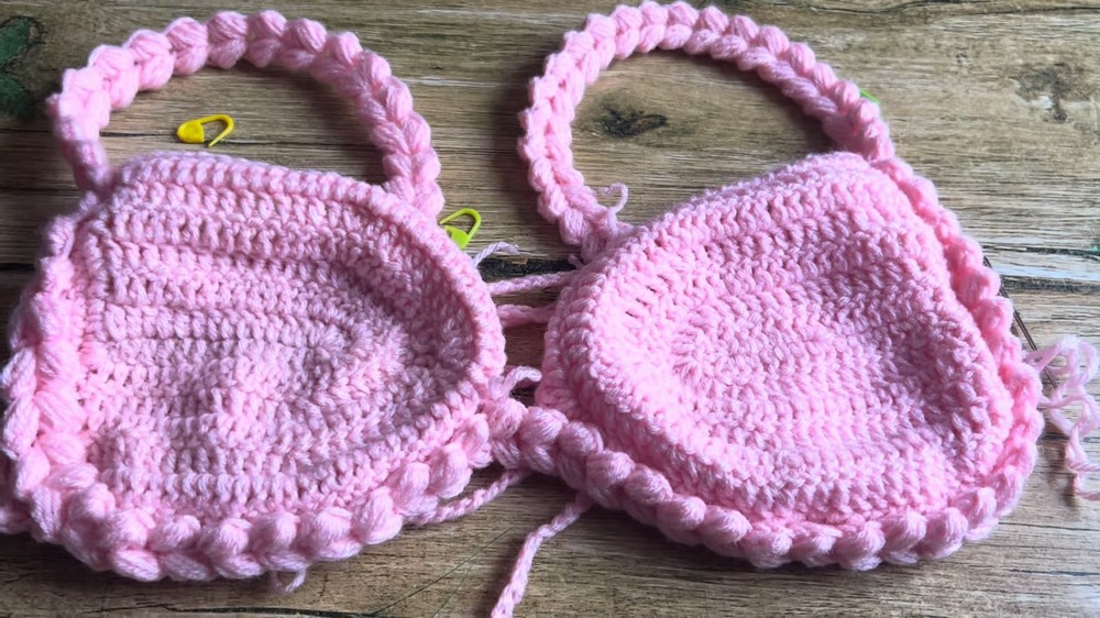 1. Use stitch markers to attach straps securely to the edges of the bikini cup.