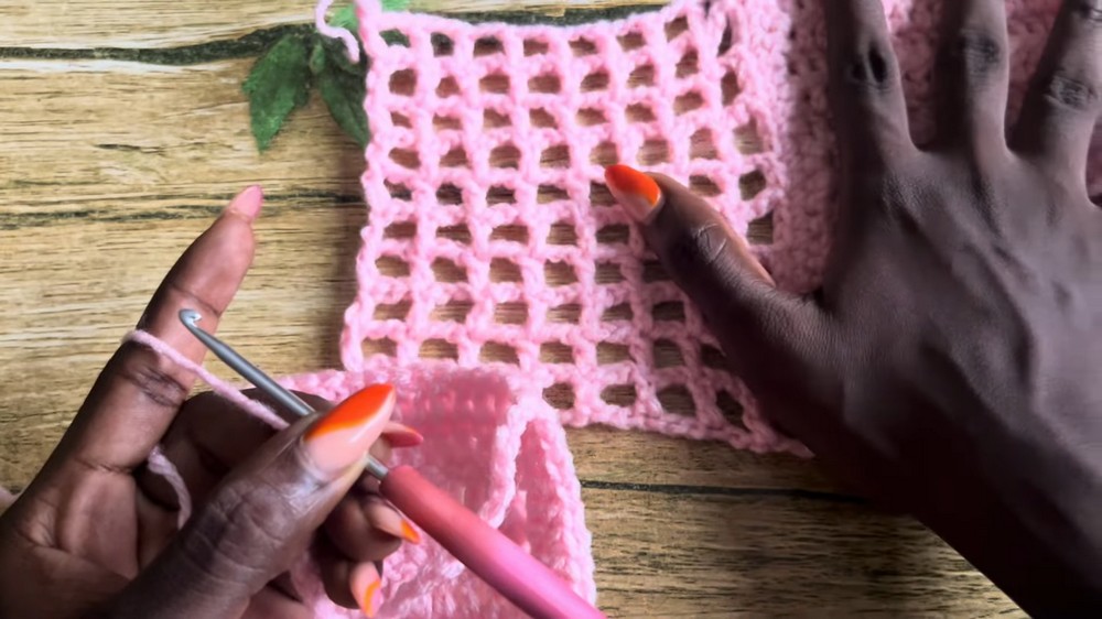3. Chain 2, turn, and work mesh rows by placing double crochets into the mesh spaces from the previous row.