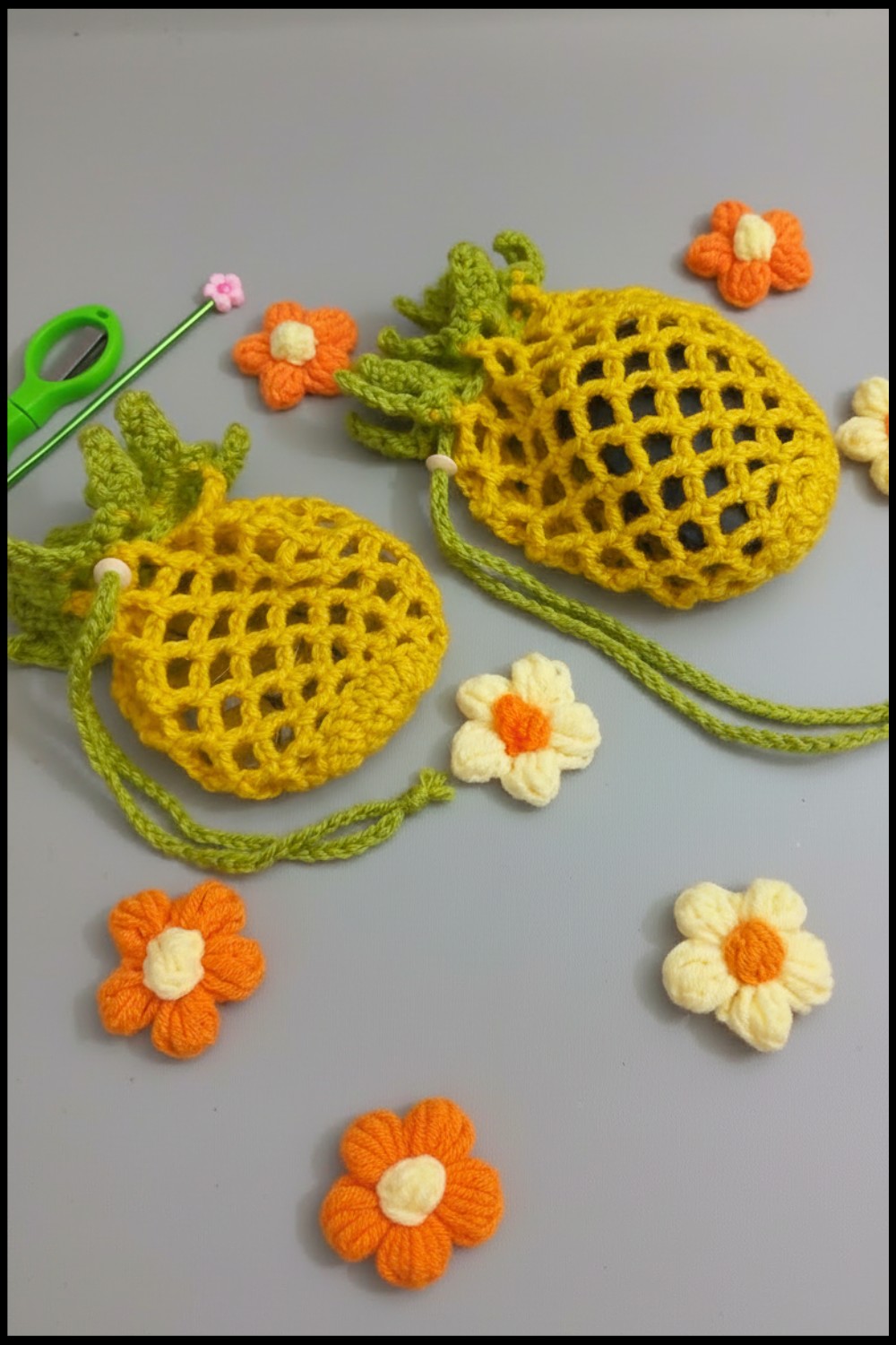 Turning soft yarn into a playful fruit shape makes this project so special, and finishing it will leave you with a durable, eye catching bag that spreads smiles wherever you go.