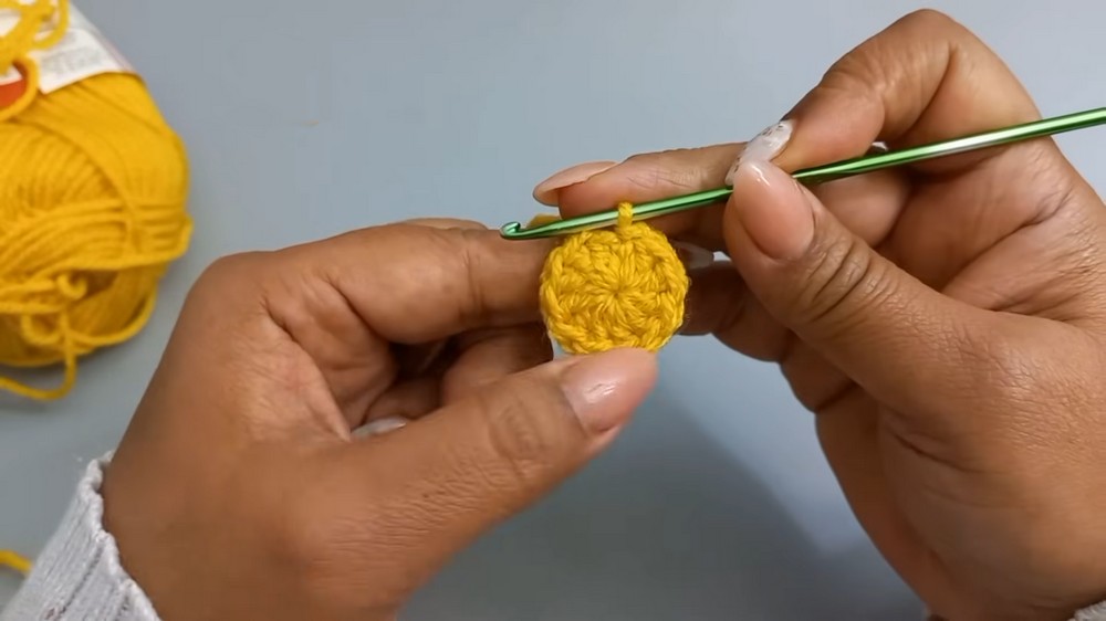 - Pull the loop to close the circle tightly. Slip stitch into the second chain to close the round.