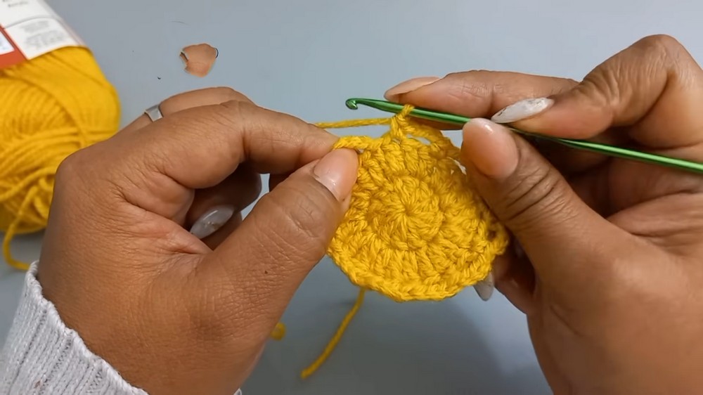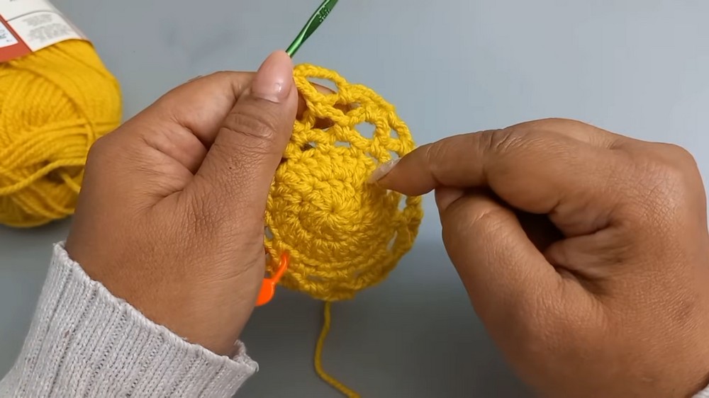- Begin the next round with two chains, then double the number of stitches by creating two pillars per stitch.