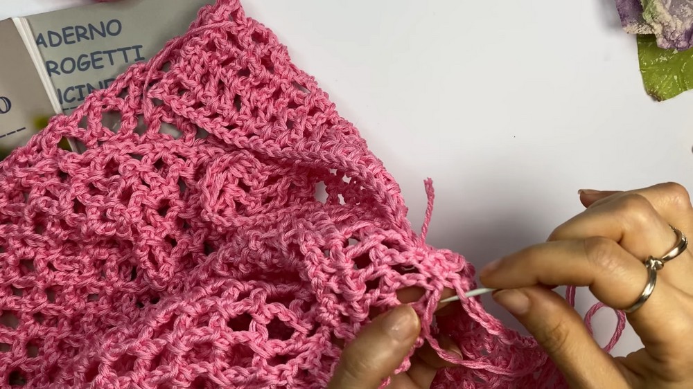 • Use your yarn and a tapestry needle to sew from the bottom up, leaving 16 to 18 cm unsewn for armholes (adjust as per your comfort).